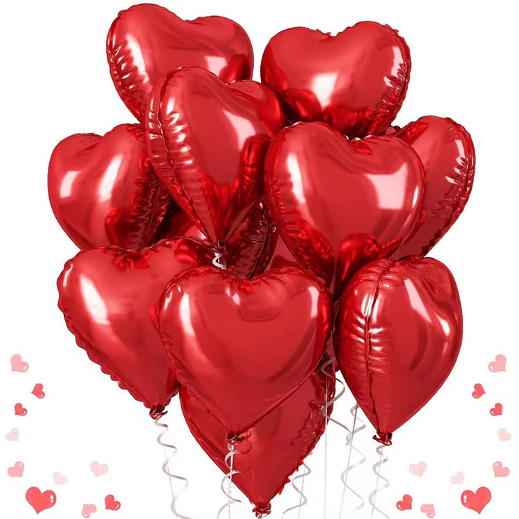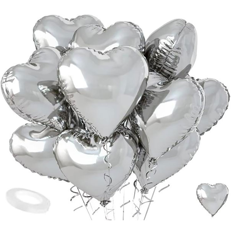 আরও উন্নত চেহারার জন্য প্রতিটি 18 ইঞ্চি হার্ট আকৃতির ফয়েল বেলুন।