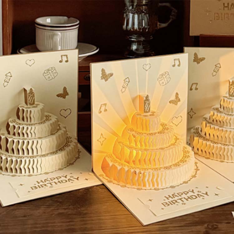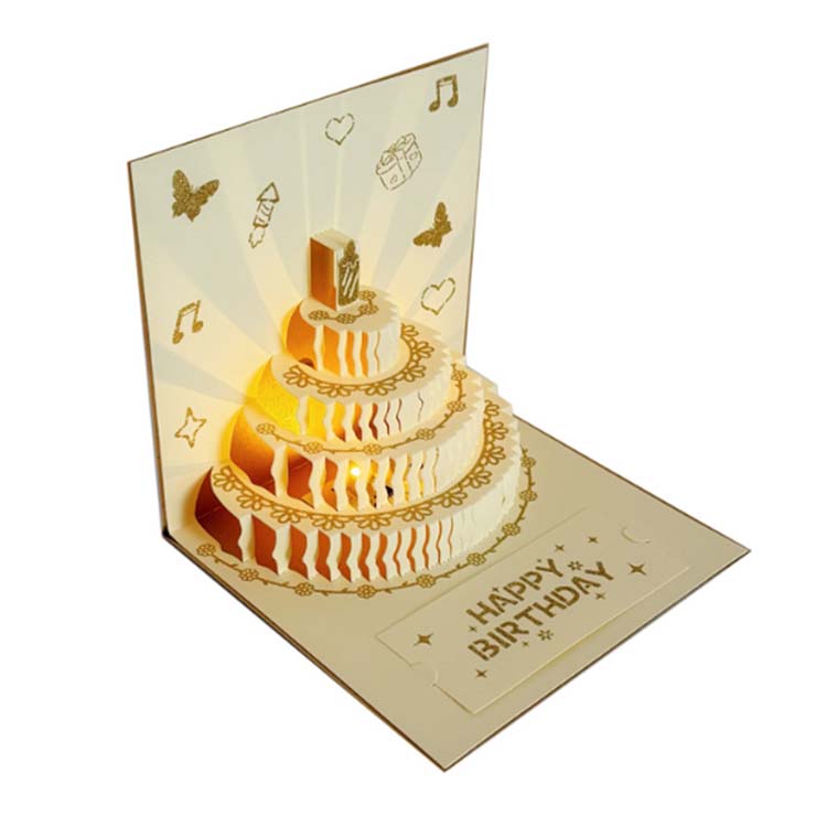 3 ডি জন্মদিনের কার্ডটি গ্রিটিং কার্ড বিভাগে একটি নতুন পণ্য। পরিবেশ বান্ধব এবং নিরাপদ উপকরণ থেকে তৈরি, এটিতে ত্রি-মাত্রিক আকার এবং অভ্যন্তরীণ আলো এবং সঙ্গীত প্রভাব রয়েছে। কমপ্যাক্ট এবং পোর্টেবল, এটিতে একটি খাম, একটি কার্ড এবং একটি ছোট কার্ড রয়েছে। এটি একটি বিস্তৃত জন্মদিনের কার্ড যা ক্লাসিক এবং আধুনিক উপাদানগুলিকে মিশ্রিত করে।