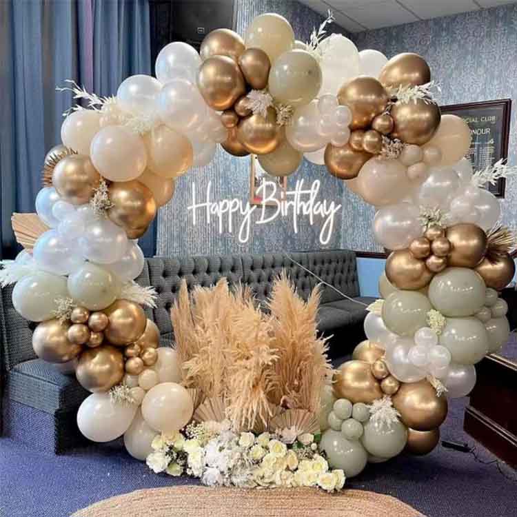 বেলুন আর্চ সেটে 100 টিরও বেশি ল্যাটেক্স বেলুন, আঠালো বিন্দু, বেলুন চেইন, নট মেশিন এবং লোগো সহ প্যাকেজিং ব্যাগ রয়েছে। খিলানের অত্যাশ্চর্য রঙের প্রভাব অর্জন করতে আমরা বিভিন্ন শৈলীর বেলুন অফার করি। এটি স্নাতক, বিবাহ, জন্মদিন, কোম্পানির বার্ষিকীর মতো বিভিন্ন উদযাপন ইভেন্টের পটভূমি সজ্জার জন্য উপযুক্ত এবং বাড়ির ভিতরে এবং বাইরে প্রযোজ্য।
