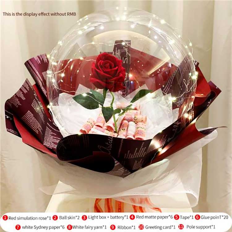 BOBO বেলুনঅবিশ্বাস্যভাবে বায়ুমণ্ডলীয়:স্বচ্ছ BOBO বেলুন, এমবেডেড গোলাপ এবং LED লাইট সমন্বিত, সেটটি একটি উজ্জ্বল এবং রোমান্টিক ভিজ্যুয়াল এফেক্ট তৈরি করে। LED লাইটগুলি একটি নরম আভাও প্রদান করে, এটিকে ভ্যালেন্টাইন্স ডে, বার্ষিকী, জন্মদিন, গ্র্যাজুয়েশন এবং মা দিবসের জন্য একটি অপরিহার্য উপহার হিসাবে তৈরি করে৷
