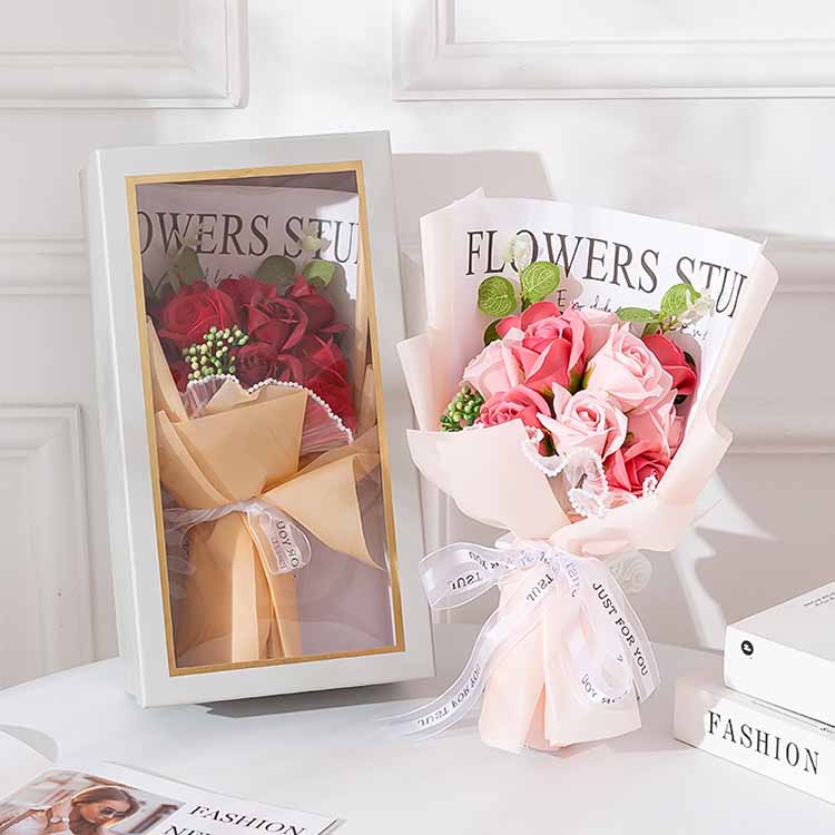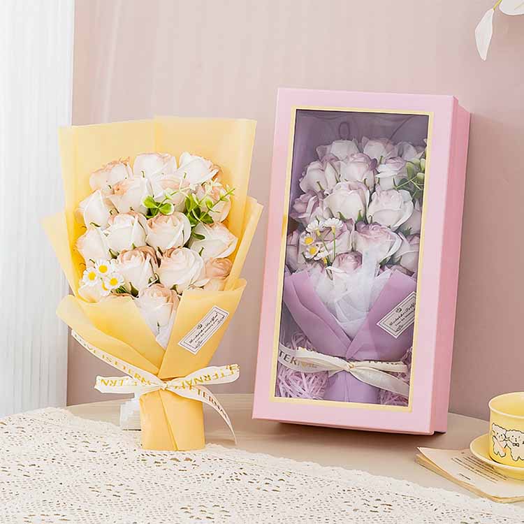 তোড়া উপহার বাক্সে ছোট এবং বড় আকার রয়েছে, আপনি এটি আপনার প্রয়োজন এবং পছন্দ অনুযায়ী কিনতে পারেন এবং প্যাকেজিং সাধারণত OPP ব্যাগ এবং ব্যাগে থাকে।