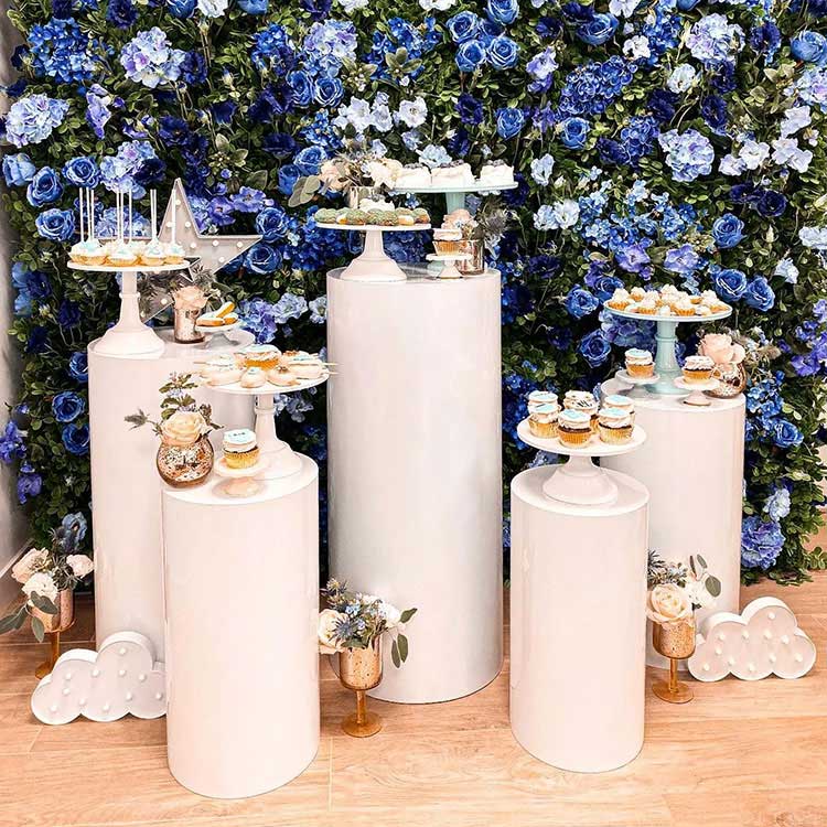 বিভিন্ন আকারের নলাকার ডেজার্ট টেবিল একাধিক স্তরে ডেজার্ট প্রদর্শন করতে পারে।