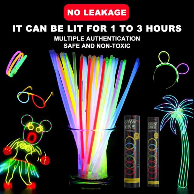 গ্লো স্টিকটিকে একটি উজ্জ্বল এবং আরও নজরকাড়া রঙে আপগ্রেড করা হয়েছে। এটি 1 থেকে 3 ঘন্টা পর্যন্ত আলোকিত থাকতে পারে। ফ্লুরোসেন্ট স্টিকগুলিতে ব্যবহৃত ফ্লুরোসেন্ট উপাদানের ঘনত্ব বেশি, যার ফলে দীর্ঘস্থায়ী এবং উচ্চ-তীব্রতার আভা দেখা যায়।