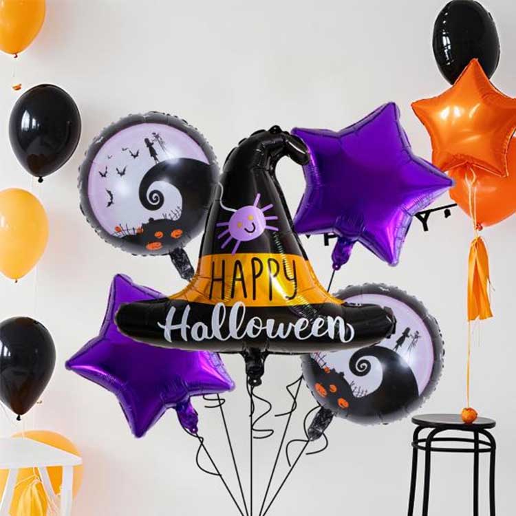 একটি হ্যালোইন ফাইভ পিস সেট একটি বেলুন সেট যা বিশেষত হ্যালোইনের জন্য ডিজাইন করা হয়েছে। এটি সাধারণত ফয়েল বেলুন, ল্যাটেক্স বেলুন এবং অন্যান্য আনুষাঙ্গিক নিয়ে গঠিত। এটিতে মোট পাঁচটি বেলুন প্রকার রয়েছে! প্রতিটি সেটে এমন একটি প্যাটার্ন বা চরিত্র রয়েছে যা হ্যালোইন থিমের সাথে পুরোপুরি মেলে। হ্যালোইন সজ্জাগুলির জন্য উপযুক্ত, আপনি এমনকি হিলিয়ামগুলি ভেসে আনতে বেলুনগুলি পূরণ করতে পারেন! এটি সত্যই হ্যালোইনের রহস্যময় পরিবেশকে তীব্র করে তোলে!