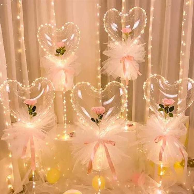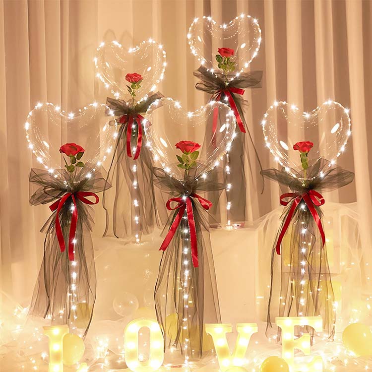আলংকারিক আনুষাঙ্গিক: সাধারণত,হার্ট আকৃতির বোবো গোলাপ সেটকিছু সজ্জা যেমন লেইস সুতা, হালকা স্ট্রিপস, এয়ার পাম্প, ব্যাটারি ইত্যাদি রয়েছে। জরিটি বোবো বলের চারপাশে আবৃত হতে পারে এবং উঠতে পারে, পুরোটিতে একটি প্রবাহিত এবং রোমান্টিক পরিবেশ যুক্ত করে; স্ট্রিপটি রাতে বা ম্লান অবস্থায় নরম আলো নির্গত করতে পারে, পুরো পোশাকটিকে আরও স্বপ্নময় এবং কমনীয় করে তোলে।