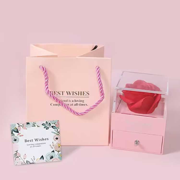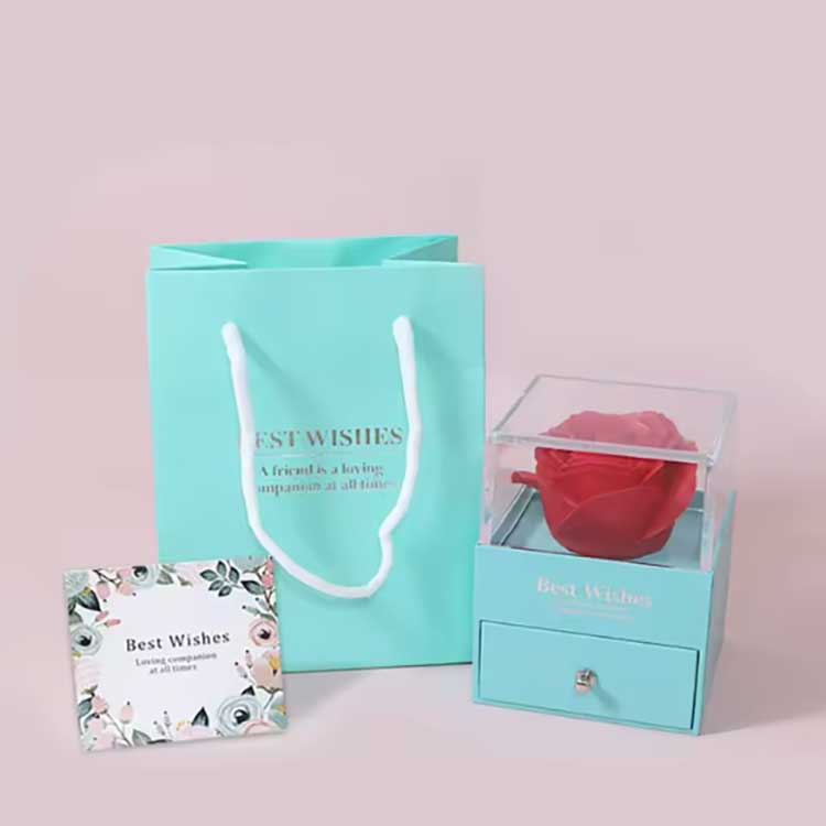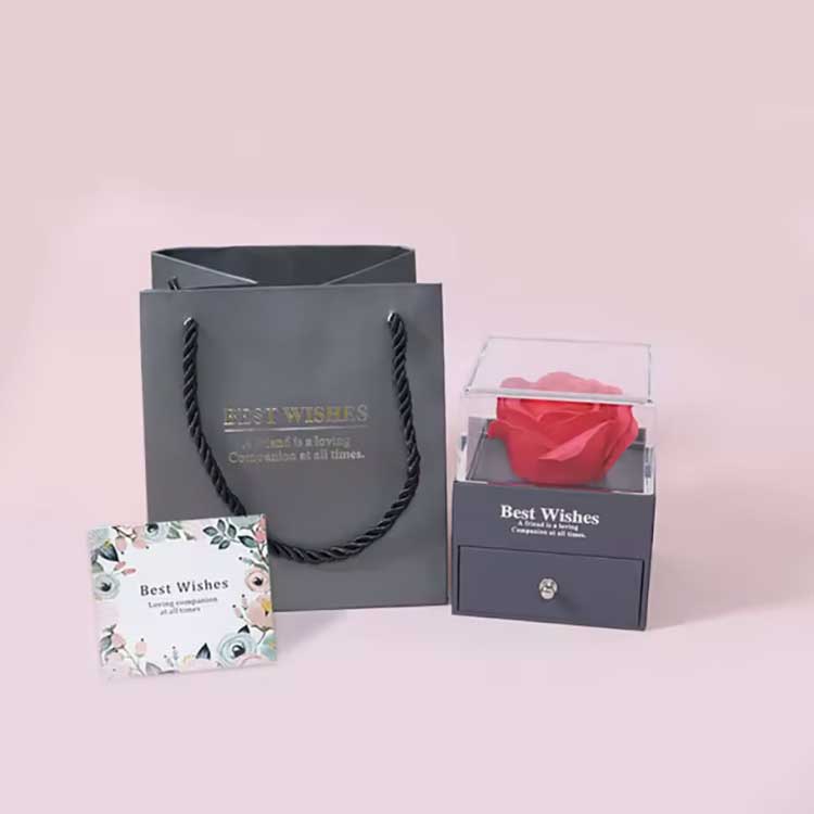 অমর ফুলের উপহার বাক্সের গহনাটিও আমাদের একচেটিয়া ডিজাইন৷ আমরা এই গহনার অংশটির জন্য তিনটি মূলধারার রঙ ডিজাইন করেছি: সোনা, রূপা এবং গোলাপ সোনা৷ এটি উচ্চ-নির্ভুলতা ইলেক্ট্রোপ্লেটিং প্রযুক্তি ব্যবহার করে তৈরি করা হয়েছে, এটি নিশ্চিত করে যে এটি দীর্ঘমেয়াদী পরিধানের পরেও বিবর্ণ বা মরিচা পড়বে না। গহনার হীরা 5A গ্রেড জিরকোনিয়াম দিয়ে তৈরি, এবং 20 বছরের অভিজ্ঞতার সাথে একজন ডিজাইনার দ্বারা সাবধানতার সাথে সেট করা হয়েছে।