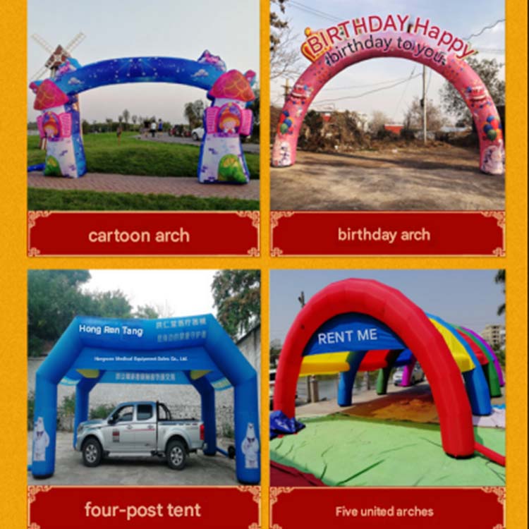 আকার এবং আকার: বিভিন্ন আকার এবং ডিজাইনে উপলব্ধ - ক্লাসিক বাঁকা খিলান, কাস্টম আকার (যেমন লোগো, কার্টুন অক্ষর), ডাবল ইনফ্ল্যাটেবল আর্চস বা থিমযুক্ত শৈলী (বিবাহ, ক্রীড়া, উত্সব)।