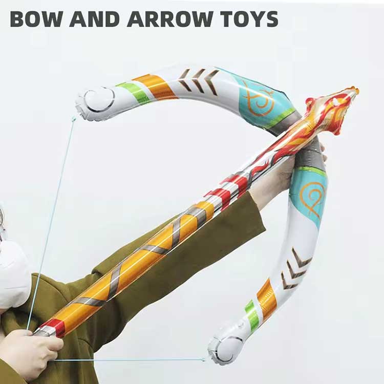 ইনফ্ল্যাটেবল ধনুক এবং তীর খেলনা সেটটি পিভিসি দিয়ে তৈরি, শিশুদের উত্সাহী খেলা সহ্য করতে সক্ষম। এটি দ্রুত স্ফীত হয় এবং দীর্ঘ সময়ের জন্য তার আকৃতি ধরে রাখে। সহজ বিনিময়যোগ্যতার জন্য তিনটি তলোয়ার অন্তর্ভুক্ত।