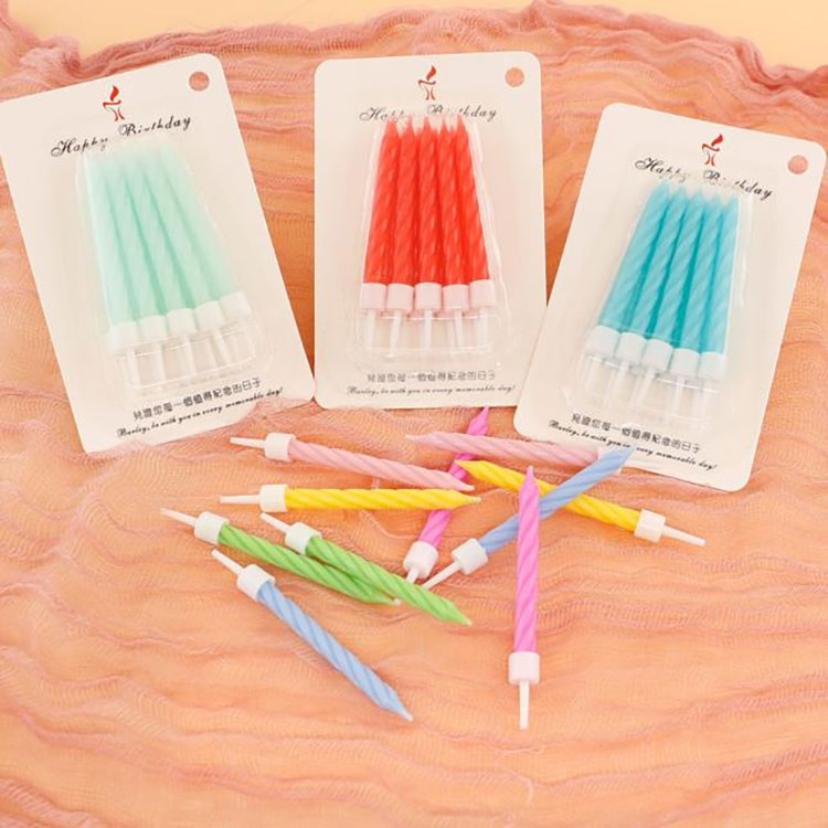 1. ম্যাকারন রঙের সর্পিল জন্মদিনের মোমবাতির শিখা উজ্জ্বল এবং সহজে নিভে যায় না; এটি 2-5 মিনিটের জন্য জ্বলে।